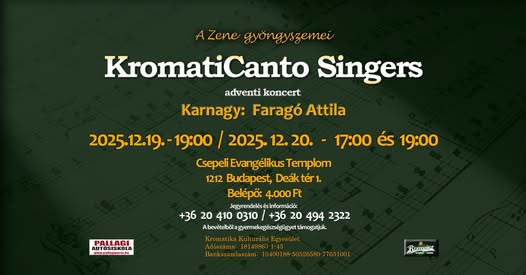 December 19. Péntek 19:00 KromatiCanto Singers koncertje (belépődíjas/jótékonysági)