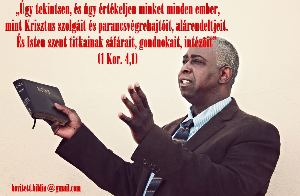 Ha a Bibliát kérdezzük, hogy milyen szolgálatban érdemes lenni, akkor azt találjuk, amit Pál apostol mond. Van olyan szolgálat, gondnokság, ami harmadik lehetőségként áll az ember előtt: Ez pedig a krisztusi hivatalviselés. Isten gondnokai lehetünk. Ez nem korlátozódik az élet egy-egy területére. Mindenütt, mindenkor gyakorolható. Az Úrnak szolgálunk, nem magunknak és nem embereknek. Abban nem lesz önzés és nem lesz keserűség. Ehhez nem kell szolgálati jogviszonyban lenni az egyházfőhatósággal, annál inkább Krisztussal. Isten gondnokai lehetünk a világban. Milyen nagyszerű feladat! Így leszünk igazán hasznára másoknak, és így találjuk meg önmagunkat is.